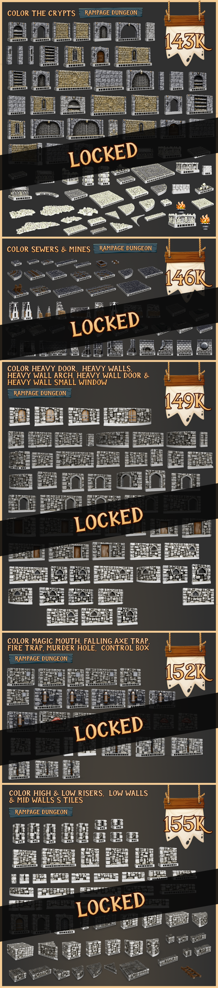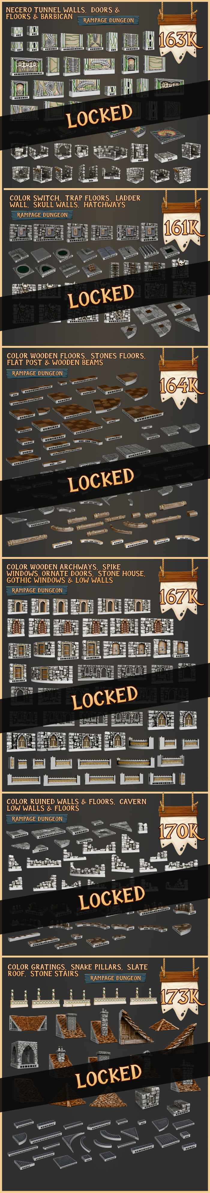 You now have the option to upgrade your pledge to ‘Terrain Tinker, town, dungeon & grotto’ to get all of the Clorehaven, Rampage Castle, Rampage Dungeon and Goblin Grotto tiles added to your account.