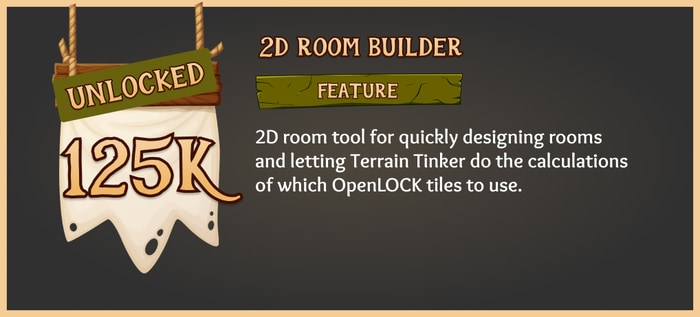 We also blasted past and unlocked the 2D room builder – the most wanted feature in our poll! This will give you a way to quickly plan out your building or dungeon by dragging full rooms or corridors and letting Terrain Tinker figure out the OpenLOCK tiles needed. You will be able to pick the style or tiles to build with then 3D print whatever you create.