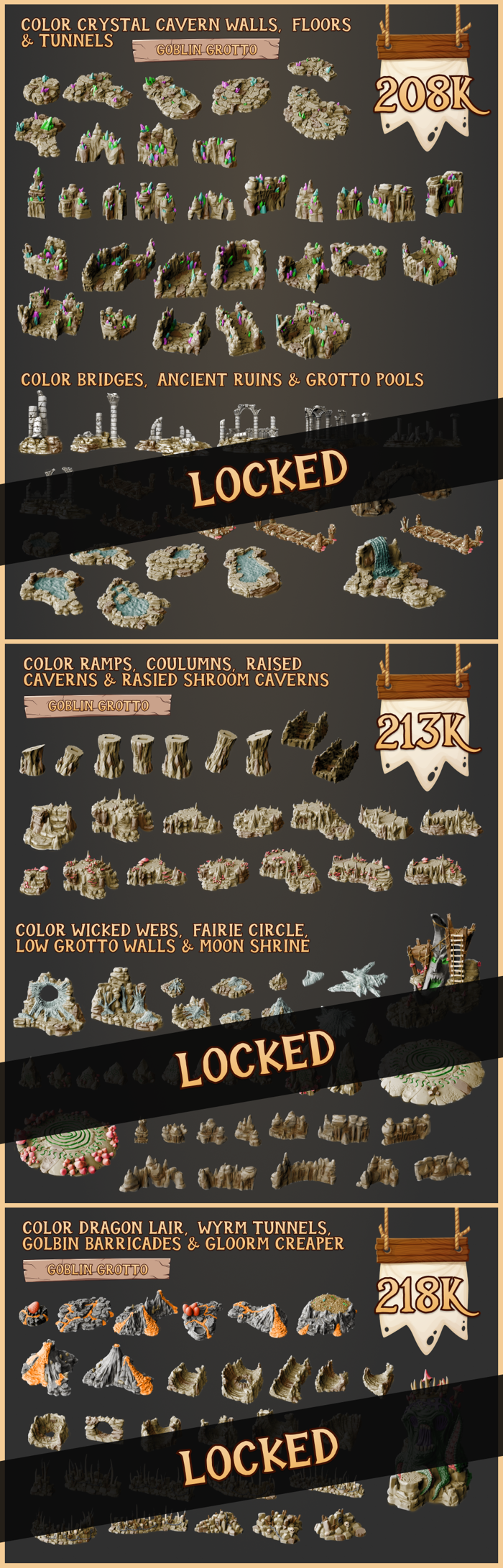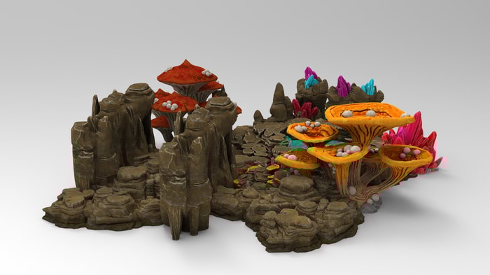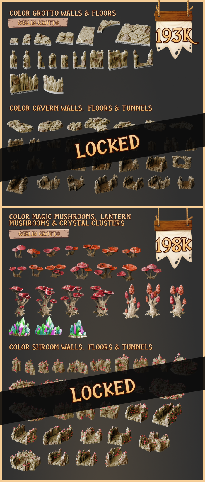 We only have two stretch goals left in Rampage Dungeon until its completely painted and imported! So our next set to be colored is the GOBLIN GROTTO. It's such a colorful set with the mushroom and crystal options. We are really excited to see what you create with it. Check out our little teaser below of what you can do.