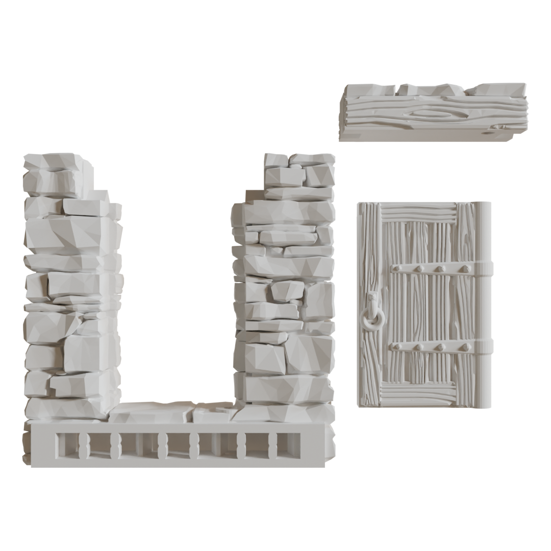 Doors in Terrain Tinker are printed as multiple separated parts so that the doors can be open and closed during games.