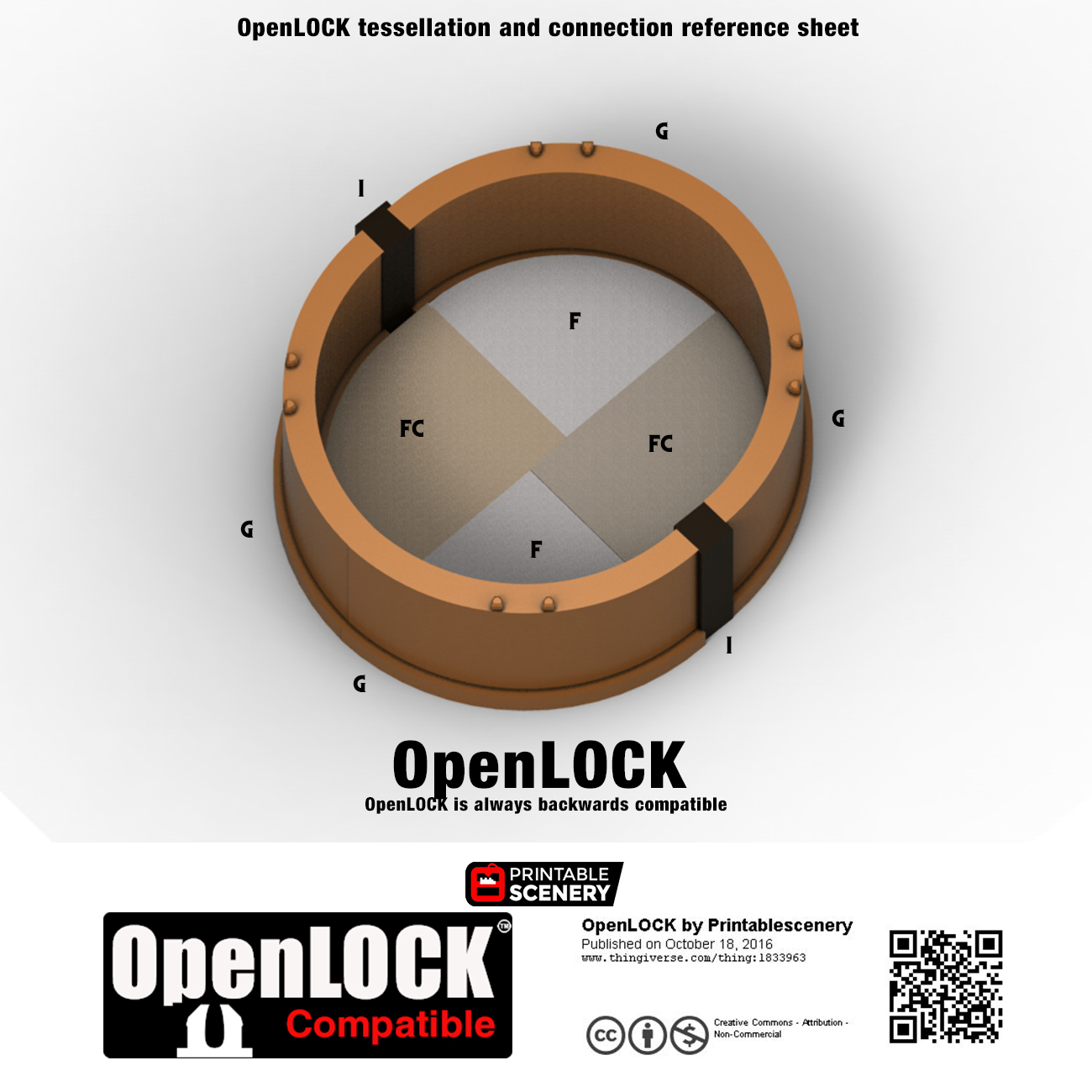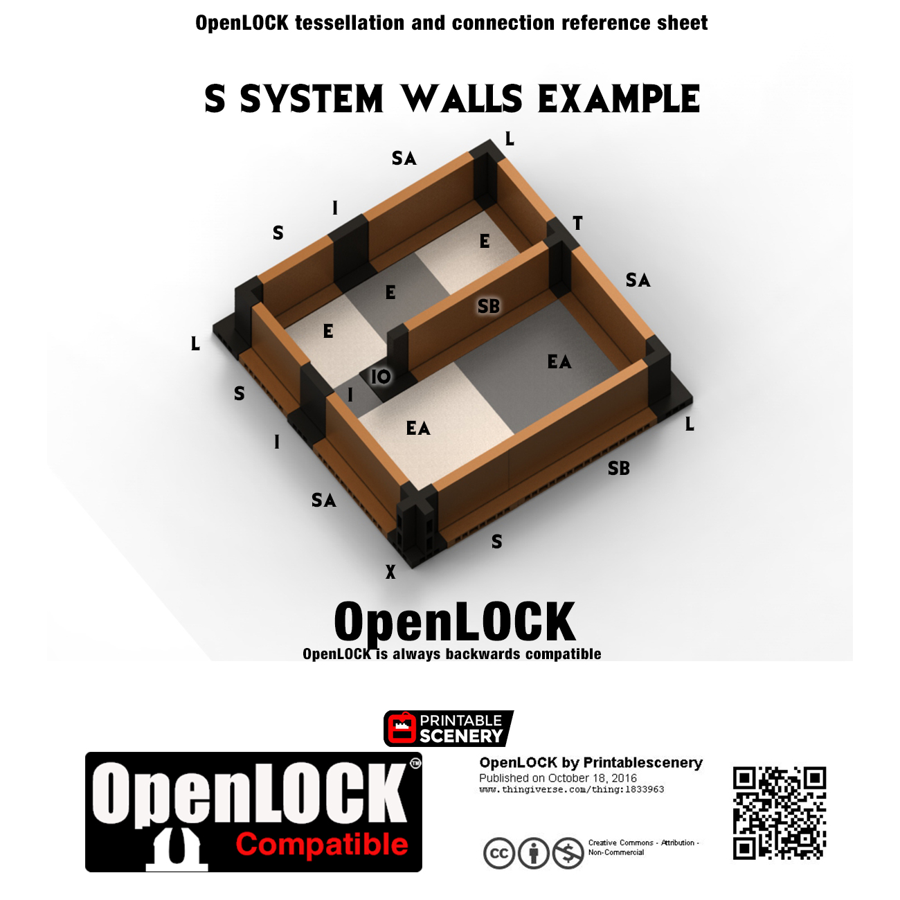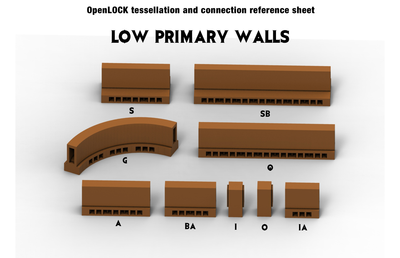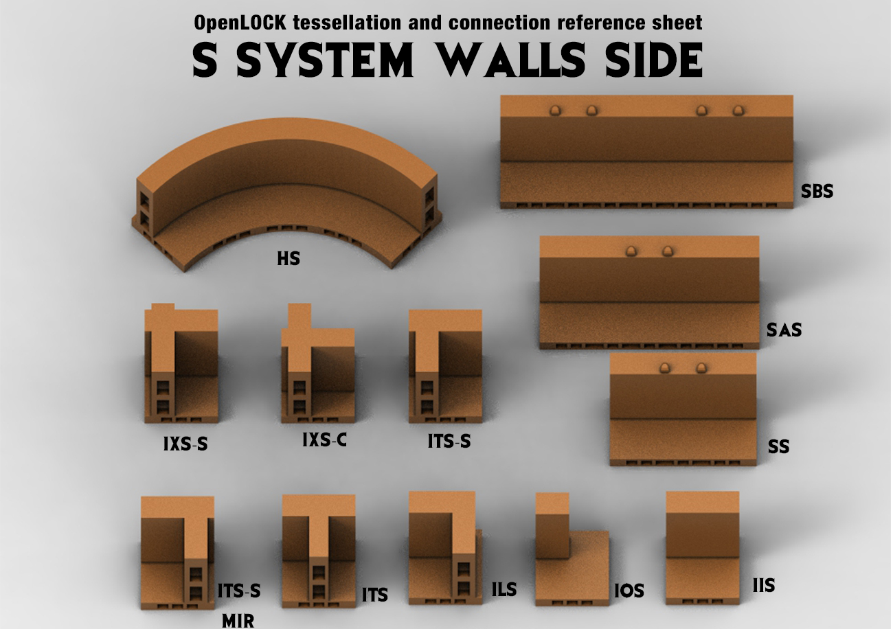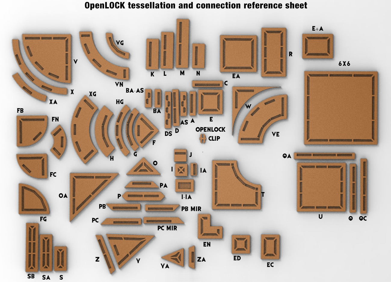 OpenLOCK is an interconnecting tile technology designed by Printable Scenery. The models on TerrainTinker use this and the new OpenLOCK Digital format. Each tile shape has a letter code.