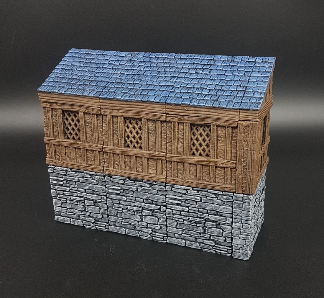 - Tudor Walls: Heavy drybrush of Army Painter Oak Brown